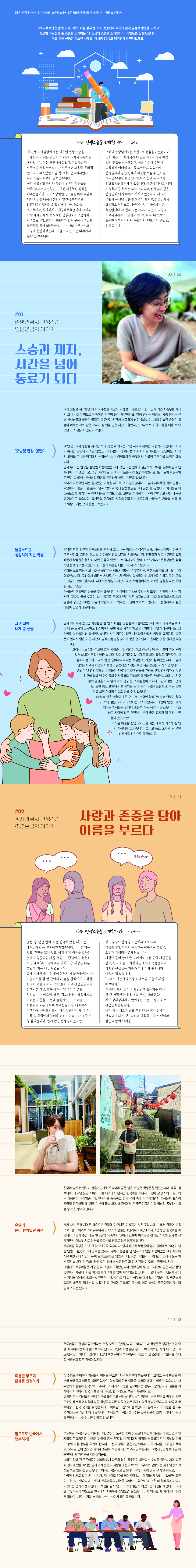 Á¦ ÀλýÀÇ ¾Æ³¦¾øÀÌ ÁÖ´Â ³ª¹«ÀÎ Àλý ½º½ÂÀ» ¼Ò°³ÇÕ´Ï´Ù. Àú´Â ¿¬ÃµÁö¿ª °íµîÇб³¿¡¼ ±Ù¹«ÇÏ´Â ±³»çÀÔ´Ï´Ù. Àú´Â Æ÷õ½Ã¿¡ »ì¾Ò°í, °íµîÇлý ¶§ ¼±»ý´ÔÀ» óÀ½ ¸¸³µ½À´Ï´Ù. ¼±»ý´ÔÀº ±³À°Àû, ¹®ÈÀû ÀÎÇÁ¶ó°¡ ºÎÁ·Çß´ø ½Ã°ñ Çб³¿¡¼ ±Ù¹«ÇÏ½Ã¸é¼ ¸ö°ú ¸¶À½À» ¾Æ³¢Áö ¾ÊÀ¸¼Ì½À´Ï´Ù.