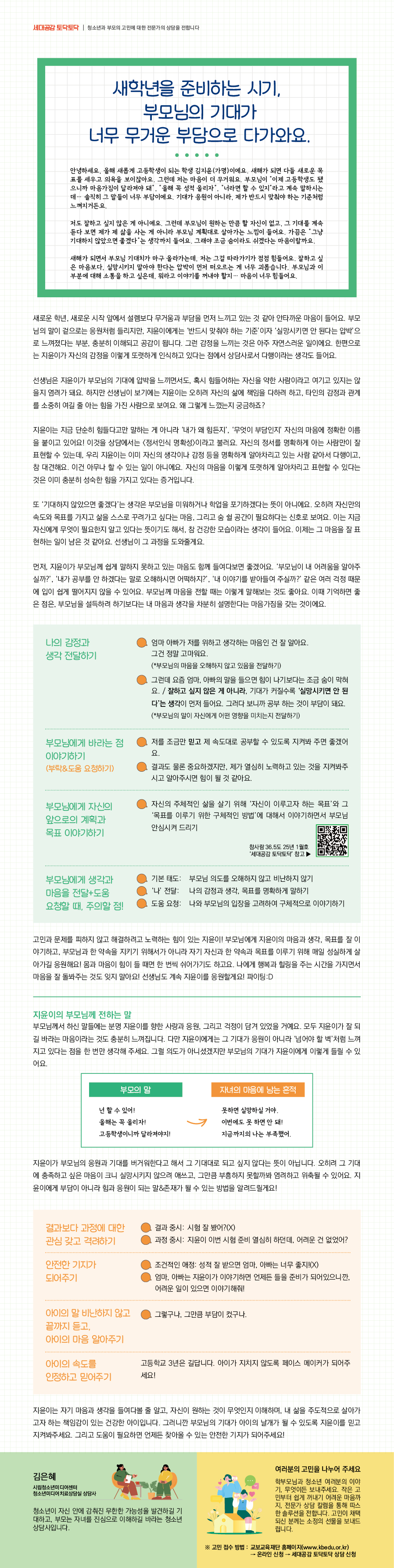 ¾È³çÇϼ¼¿ä, ¿ÃÇØ »õ·Ó°Ô °íµîÇлýÀÌ µÇ´Â Çлý ±èÁöÀ±(°¡¸í)ÀÌ¿¡¿ä. »õÇØ°¡ µÇ¸é ´Ùµé »õ·Î¿î ¸ñÇ¥¸¦ ¼¼¿ì°í ÀÇ¿åÀ» º¸ÀÌÀݾƿä. ±×·±µ¥ Àú´Â ¸¶À½ÀÌ ´õ ¹«°Å¿ö¿ä. ºÎ¸ð´ÔÀÌ ¡°ÀÌÁ¦ °íµîÇлýµµ µÆÀ¸´Ï±î ¸¶À½°¡ÁüÀÌ ´Þ¶óÁ®¾ß µÅ", "¿ÃÇØ ²À ¼ºÀû ¿Ã¸®ÀÚ¡±, ¡°³Ê¶ó¸é ÇÒ ¼ö ÀÖÁö¡±¶ó°í °è¼Ó ¸»ÇϽôµ¥¡¦ ¼ÖÁ÷È÷ ±× ¸»µéÀÌ ³Ê¹« ºÎ´ãÀÌ¿¡¿ä. ±â´ë°¡ ÀÀ¿øÀÌ ¾Æ´Ï¶ó, Á¦°¡ ¹Ýµå½Ã ¸ÂÃç¾ß ÇÏ´Â ±âÁØÃ³·³ ´À²¸Áö°Åµç¿ä.